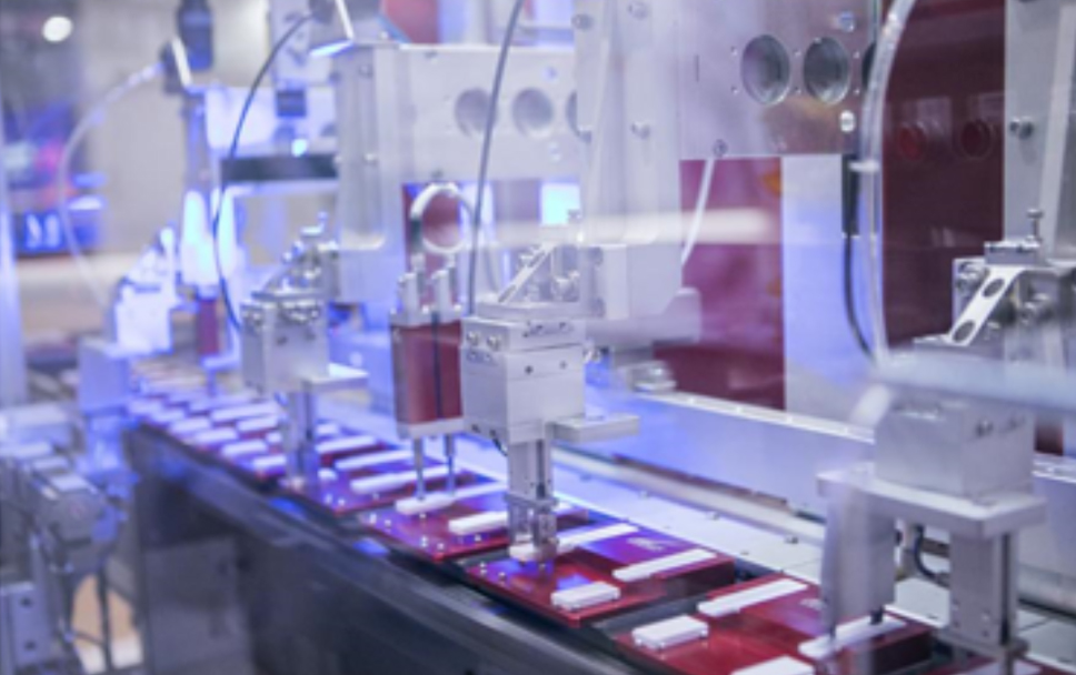 膠體金試紙條儲料—>試紙自動供料—>CCD檢測及定位不良—>自動裁切—>剔除不良—>接料定位—>底殼供料—>試紙裝入底殼—>CCD視覺檢測入殼效果—>面蓋供料—>紫外激光打標(biāo)—>打標(biāo)效果CCD檢測—>壓合面蓋—>壓合效果復(fù)檢CCD—>自動出料計(jì)數(shù)等一系列動作,各檢測工位均配置自動剔除不良品功能。此條生產(chǎn)線,可使膠體金類試劑卡后段組裝工序?qū)崿F(xiàn)完全自動化,同時(shí)CCD讀碼功能將產(chǎn)品信息同步綁定上傳到客戶工廠MES系統(tǒng),可實(shí)現(xiàn)產(chǎn)品信息存儲與追溯。